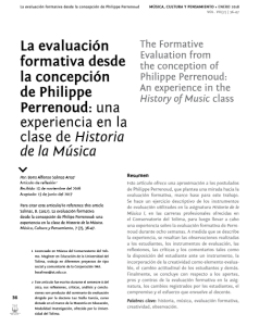 Este artículo ofrece una aproximación a los postulados de Philippe Perrenoud, que plantea una mirada hacia la evaluación formativa, marco base para este trabajo. Se hace un ejercicio descriptivo de los instrumentos de evaluación utilizados en la asignatura Historia de la Música I, en las carreras profesionales ofrecidas en el Conservatorio del Tolima, para luego llevar a cabo una experiencia sobre la evaluación formativa de Perrenoud durante ocho semanas. A medida que se describe la experiencia, se resaltan las observaciones realizadas a los estudiantes, los instrumentos de evaluación, las reflexiones, las críticas y los comentarios tales como la disposición del estudiante ante un instrumento, la incorporación de la creatividad como elemento evaluable, el cambio actitudinal de los estudiantes y demás. Finalmente, se concluye con respecto a los aportes, pros y contras de la evaluación formativa en la asignatura, los cambios registrados por los estudiantes, el compromiso y el esfuerzo que envuelve al docente.